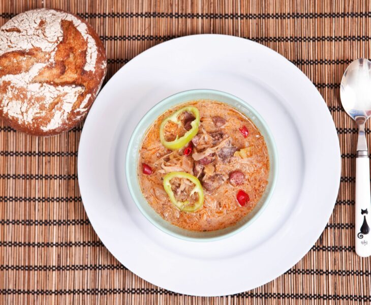Előkészítés: 20 perc + egy éjszaka Elkészítési idő: 50 perc Nehézségi fok: 3 Hozzávalók: 1 kg savanyú káposzta 2 vöröshagyma friss tárkony, lestyán, koriander 1 …