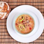 Az olajat felhevítjük egy nagyobb méretű serpenyőben, és megpároljuk benne a hagymát, majd hozzáadjuk a fűszereket, és addig pirítjuk, míg illatozni kezd.