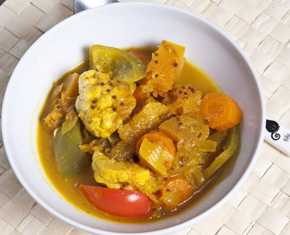 Belekeverjük a többi zöldséget, és további 10 percig együtt pároljuk. Tálalás előtt tehetünk bele darált mandulát vagy kókuszt, esetleg kókusztejet is.